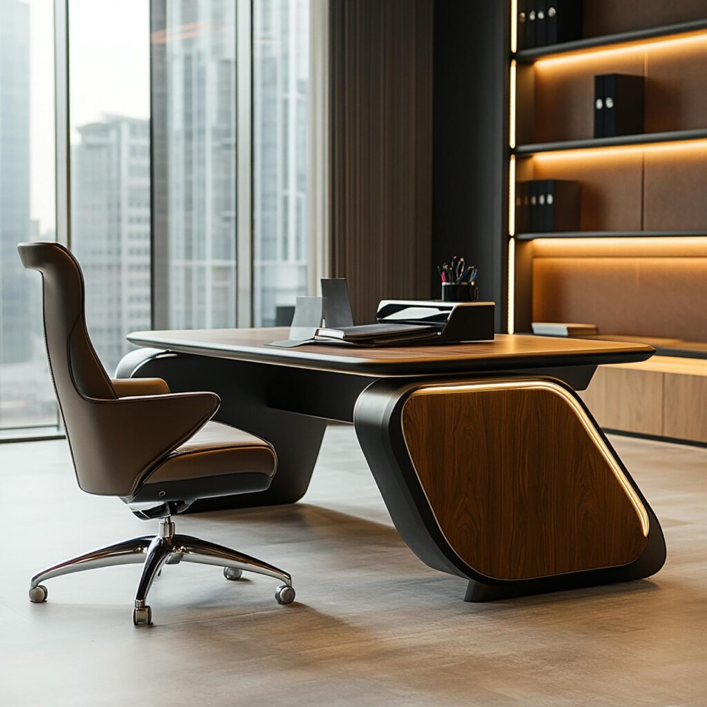 • Executive Desks: Sophisticated desks for managers and executives, crafted from premium wood and metal finishes, combining elegance with utility.